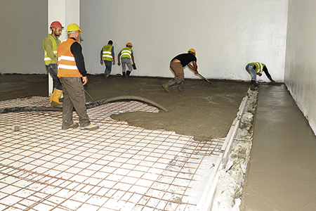 עבודות יציקת עיגון של אלמנטים מקובעים ברצפת הבטון
